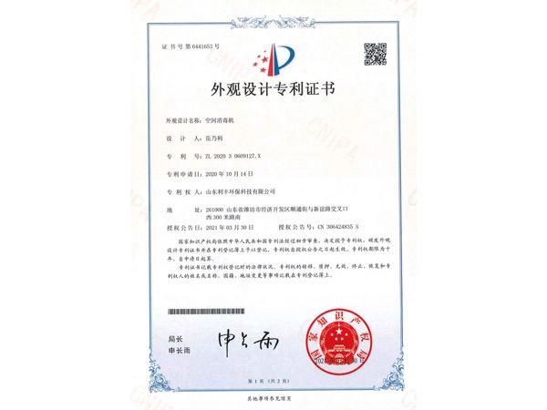外觀設計專利證書